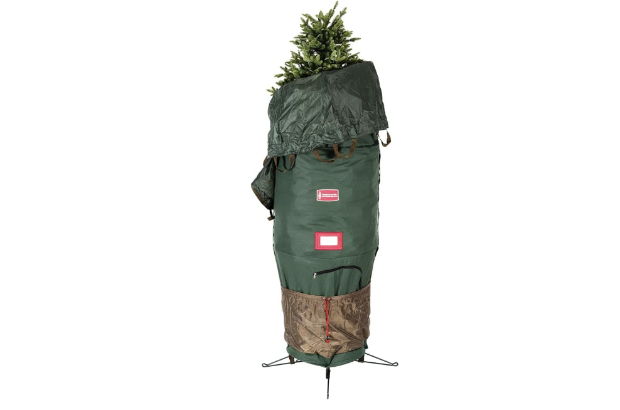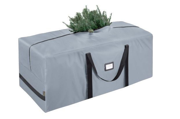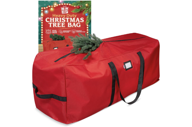 This bag is heavy-duty and can accommodate trees from seven feet to nine feet tall. The 600 denier fabric is rip-resistant and available in red and green. Simply disassemble the two tree sections, placing the base and the crown in the bag. The high-quality zipper is durable enough to secure all the branches.