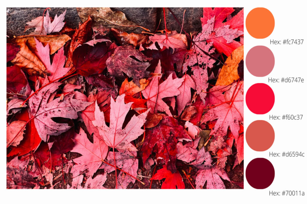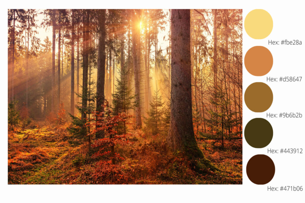 A popular way to choose your scheme for indoor spaces is to explore how nature interacts with color through photography. Simply load your favorite fall landscape into a Hex code generator and find the paint alternative to those shades. The results are spectacular.
