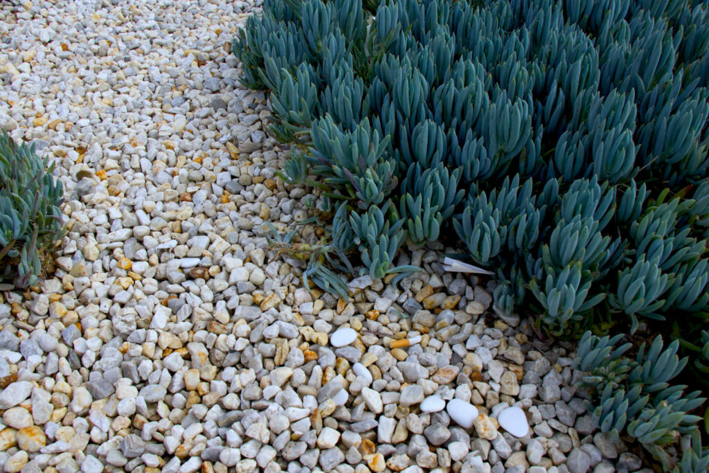 It’s when you replace grass with gravel or stone and drought-tolerant plants. The pebbles act as mulch and ground cover, reducing water use and maintenance.